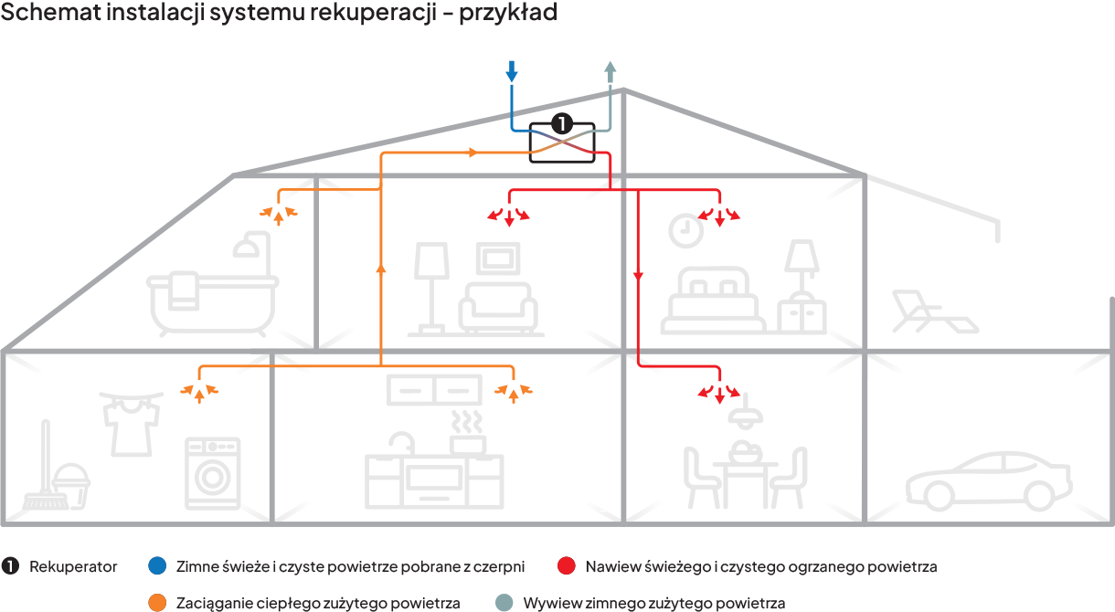 ● Świeże powietrze przez cały rok – stała wymiana powietrza eliminuje problem duszności, wilgoci oraz zanieczyszczeń, zapewniając zdrowy mikroklimat w pomieszczeniach.